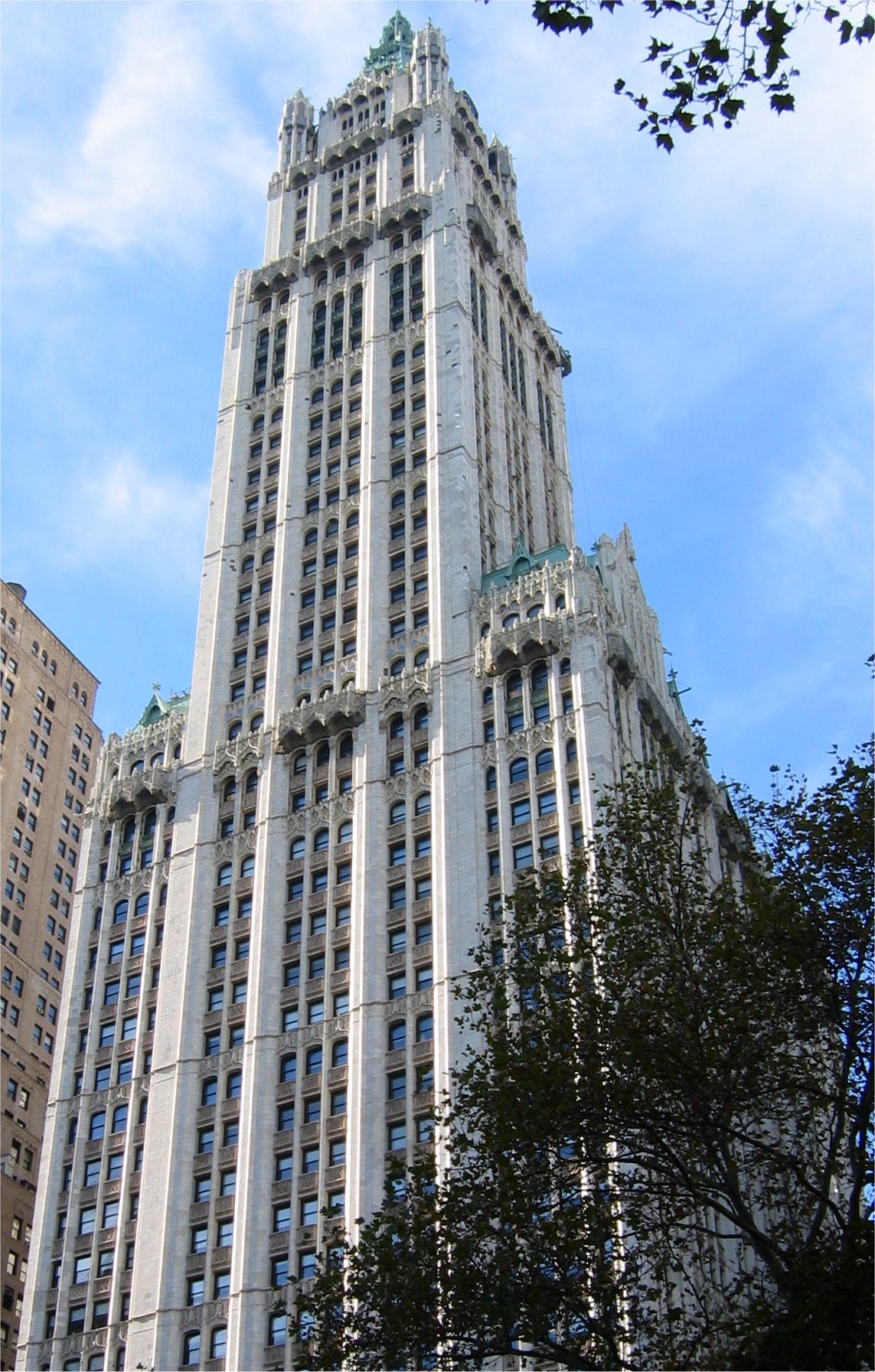 Located on Broadway near City Hall, the Woolworth Building is one of the most famous skyscrapers in the United States. It was designed by Cass Gilbert and completed in 1913. It became the tallest building in the world until the Chrysler Building topped it in 1929. The building was commissioned by Frank W. Woolworth, proprietor of an international chain of five-and-ten-cent stores. The tower served as the national company headquarters, until it was sold in 1998. During the 1980s, the Woolworth Company undertook a major restoration of the building’s exterior. The Woolworth Building is a key monument in the creation of New York as a skyscraper city because it established the basic principles for such construction after 1920.