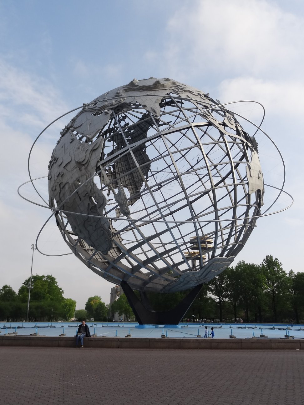 Located it the Flushing Meadows-Corona Park in Queens, the Unisphere is a giant stainless-steel globe. It was both the physical center and visual logo of the 1964–65 World’s Fair. It embodied the fair’s theme, “Peace through understanding in a shrinking globe and in an expanding universe.” The Unisphere was designed by Gilmore D. Clarke, the noted landscape architect who also designed the grounds of the 1939–40 World’s Fair, which took place on the same site. His 1964 plan set pavilions, sculptures, and fountains on axes radiating from the Unisphere in a geometric, Beaux-Arts-inspired layout.