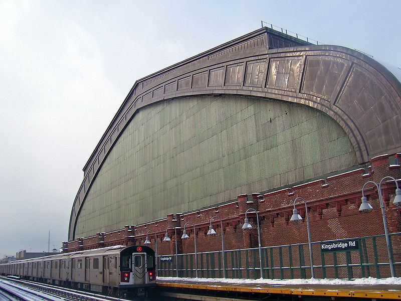 The Kingsbridge Armory, with its massive and crenellated parapets, gives the appearance of a medieval Romanesque fortress. Officially the home of the 258th Field Artillery (8th Regiment), it is reputedly the largest armory in the world, covering an entire city block. Designed by the firm of Pilcher & Tachau, which gained acclaim for their competition design of 1901 for the Squadron C Armory in Brooklyn, the Kingsbridge Armory was built on the site of the proposed eastern basin of the Jerome Park Reservoir.